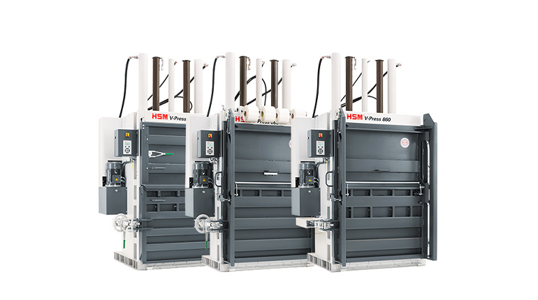 The HSM V-Press 860 Eco can compact both cardboard and plastic film/foil.